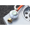 Gril je pojízdný (2 kolečka), je vybaven sklopným víkem s teploměrem a odkládacími poličkami s háky na příslušenství. Dále je vybaven přídavným bočním vařičem se samostatnou regulací a piezo zapalováním. Ve střední části je uzavíratelná skříňka s dvířky. Součástí je i spojovací hadice k plynové lahvi a redukční ventil. Díky sklopné boční poličce se gril snadno skladuje.