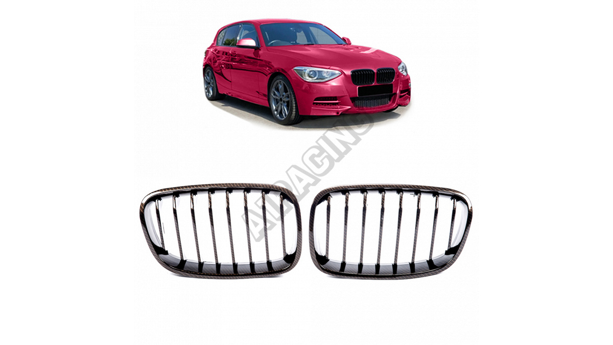 Moderný gril športový jednotlivé rebrovanie Carbon Look je vynikajúcim doplnkom pre vaše BMW 1 (F20, F21) Hatchback vyrábané v rokoch 2011-2015. Vďaka svojmu jedinečnému vzhľadu dodáva vozidlu športový charakter.