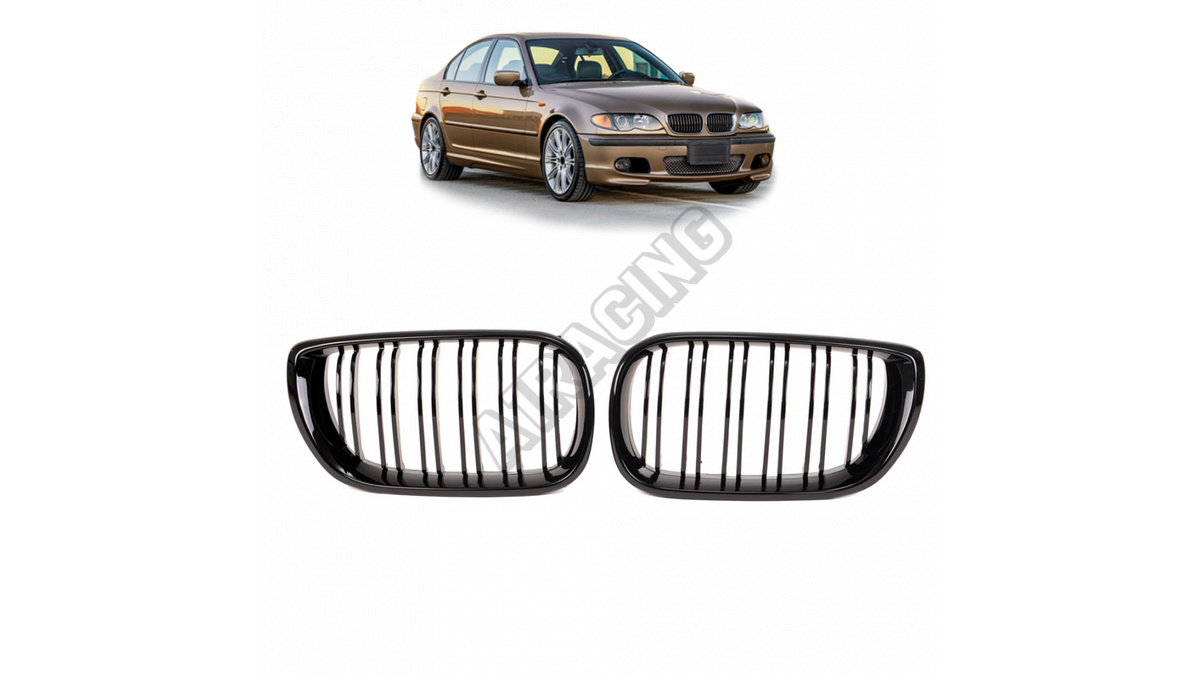 Športová mriežka dvojité rebrovanie Gloss Black je ideálnym doplnkom pre BMW 3 (E46) vo verzii Sedan, Touring alebo Compact vyrábané v rokoch 2001-2005.