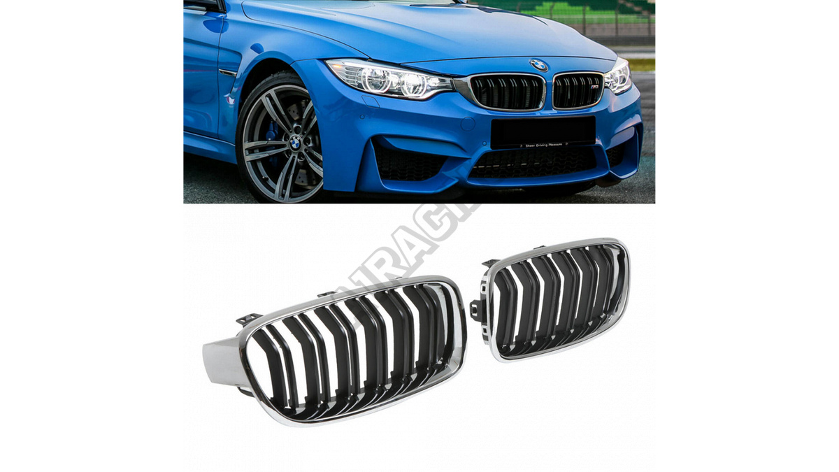 Mriežka BMW 3 F30 F31 dvojité rebrovanie Chróm & Čierna