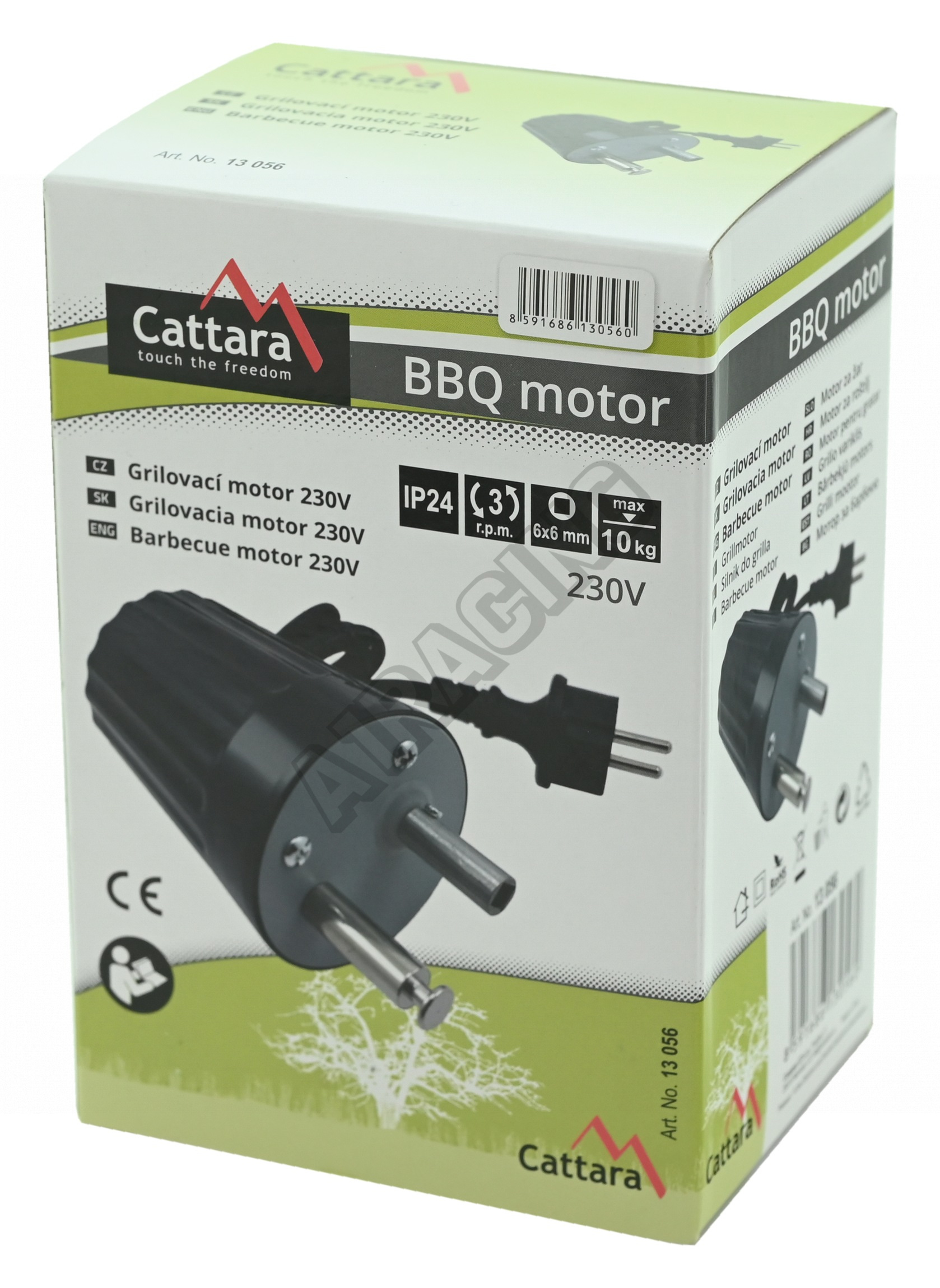 Motor je vhodný k použití pro rožeň se čtvercovým uchycením s průřezem 6x6 mm. Motor nabízí maximální zátěž až pro 10 kg masa při rychlosti otáčení 3 otáčky za minutu.