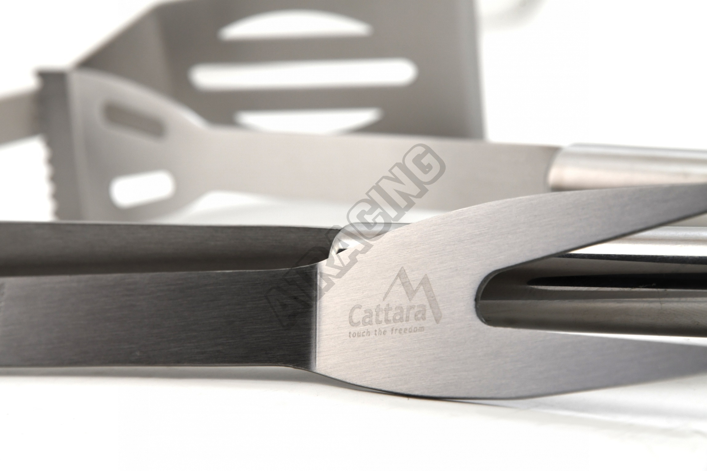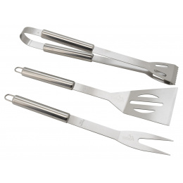 Kleště jsou speciálně tvarovány pro jistý úchop nejrůznějších pokrmů a mají délku 35 cm. Dvouzubá vidlička s délkou 32 cm. Obracečka délky 33 cm s precizně zabroušenou hranou, a odtokovými otvory pro otáčení masitých ale i jiných pokrmů.