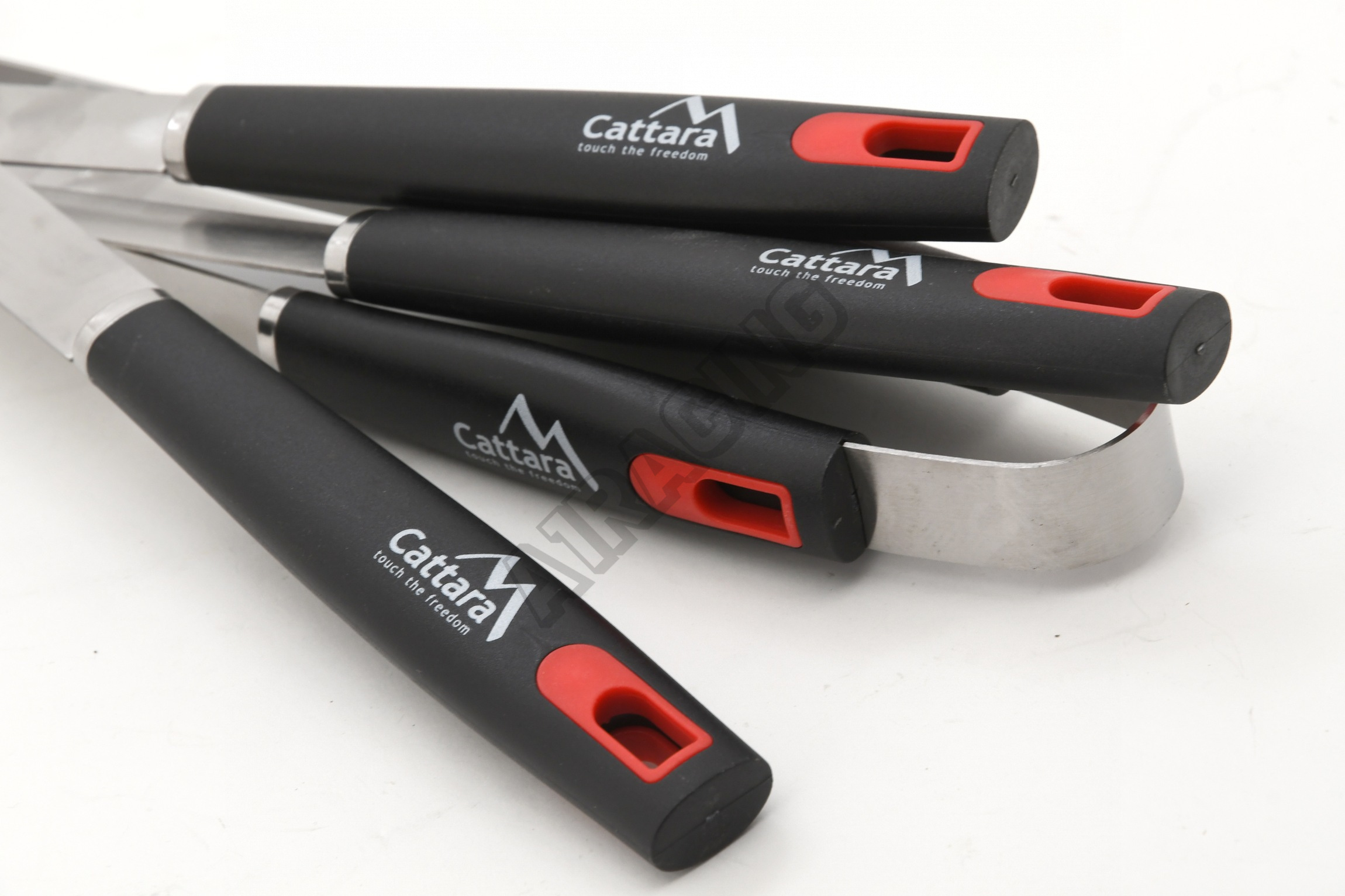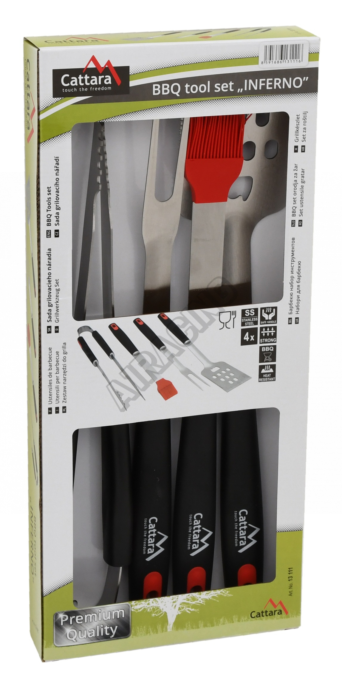 Sada nářadí prémiové kvality INFERNO, skládající se z obracečky, vidličky, kleští a mašlovačky.