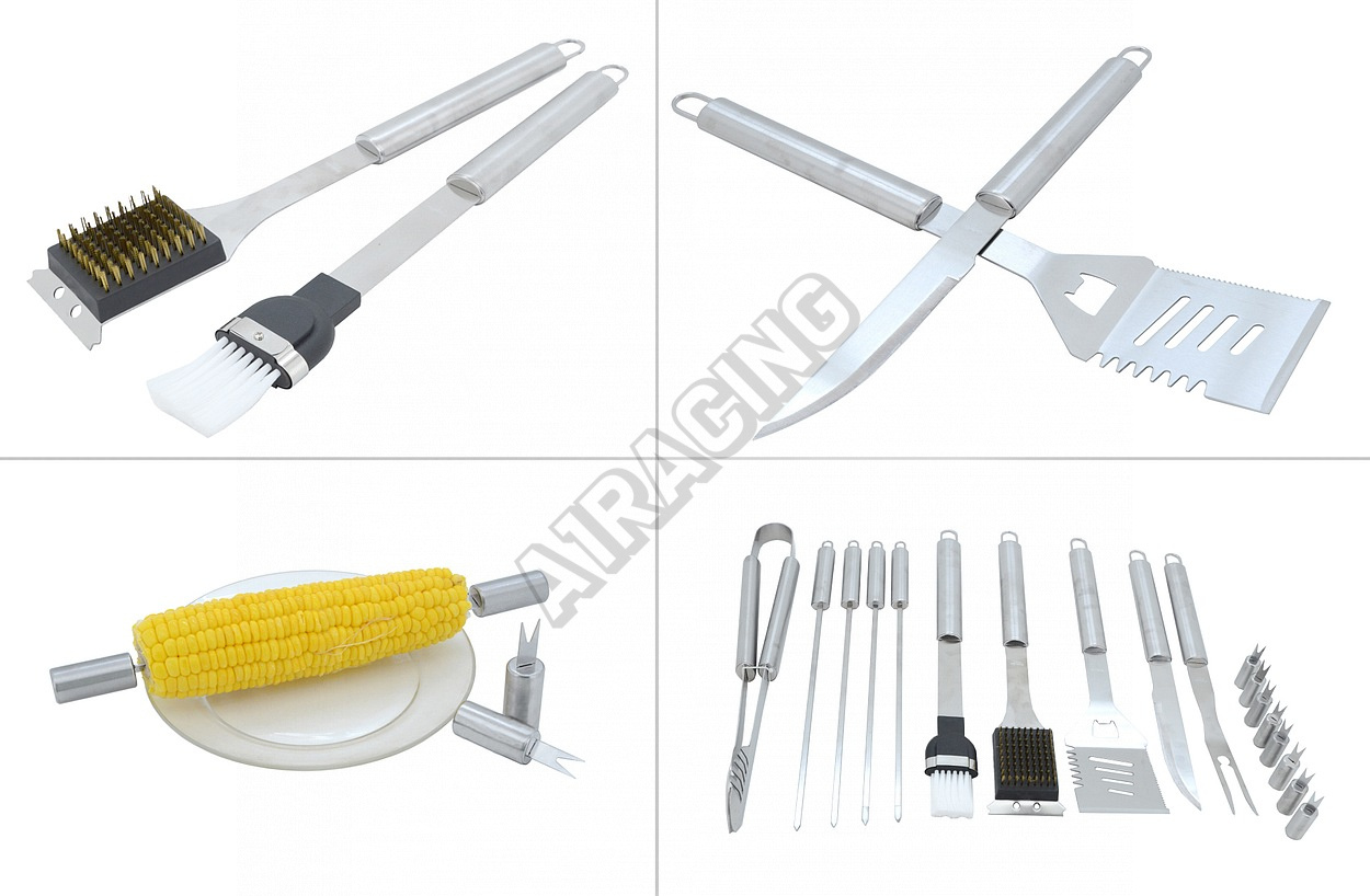Sada obsahuje veškeré nástroje pro přípravu nejrůznějších pokrmů, ale i následnou údržbu grilu. Veškeré nástroje jsou navíc kvalitně zpracovány z nerezové oceli.