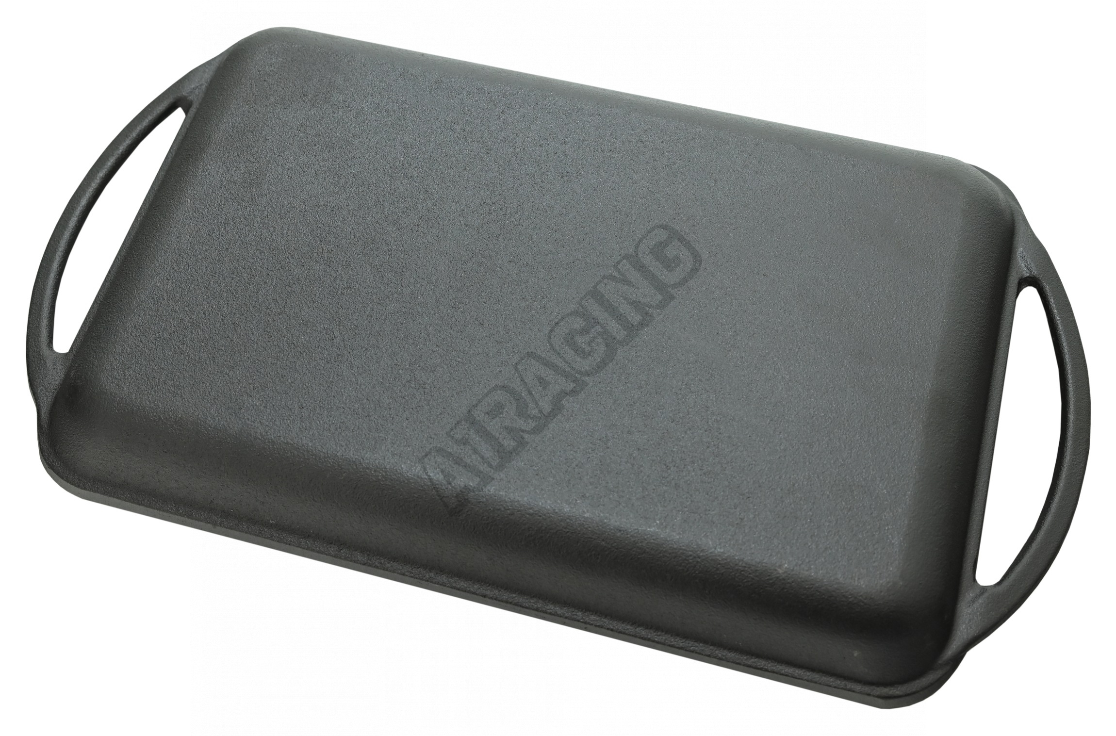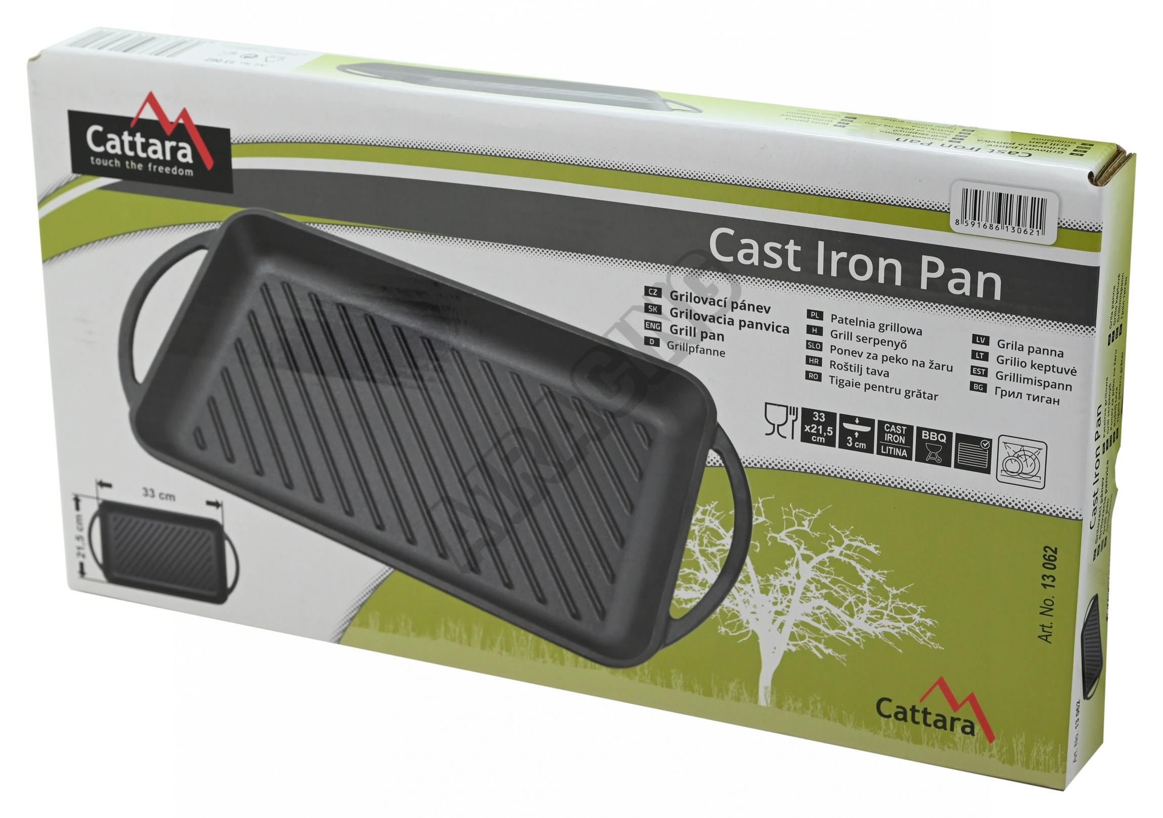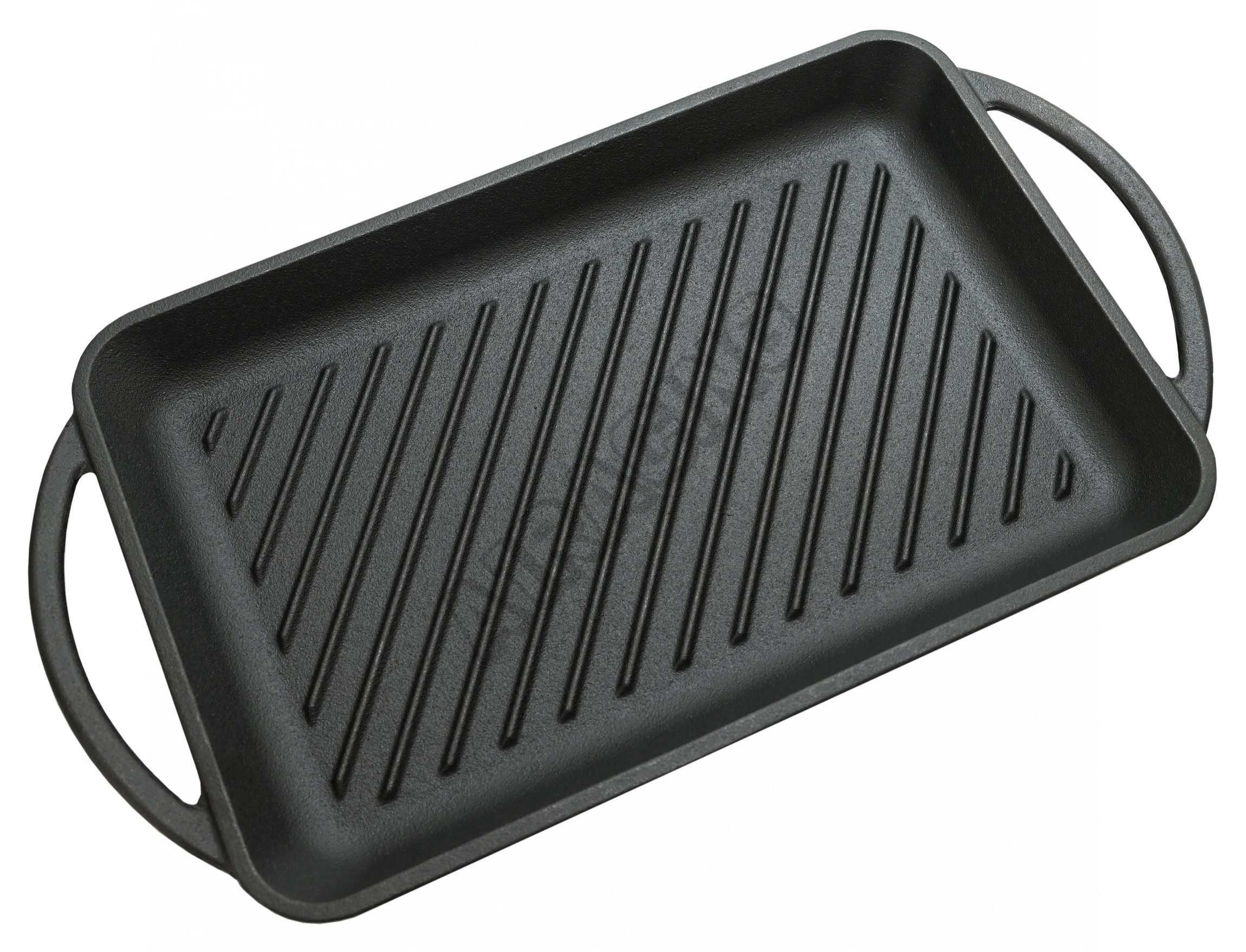 Grilovací pánev z litiny obdélníkového tvaru s rozměry 33 x 21,5 cm.Pánev nabízí prostor pro tepelno