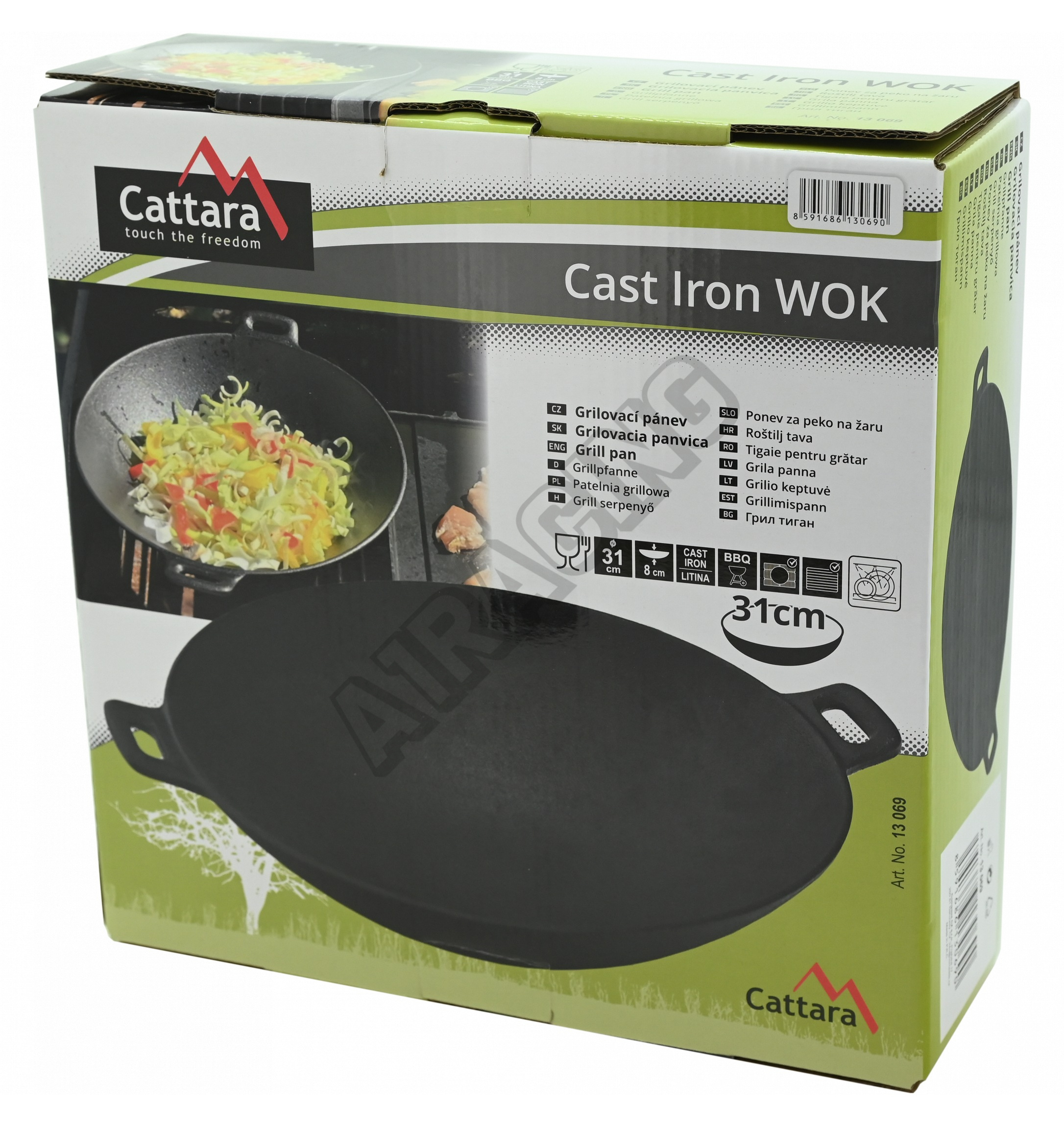 Grilovací pánev WOK z litiny o průměru 31 cm.Pánev nabízí prostor pro tepelnou úpravu pokrmů, ideáln