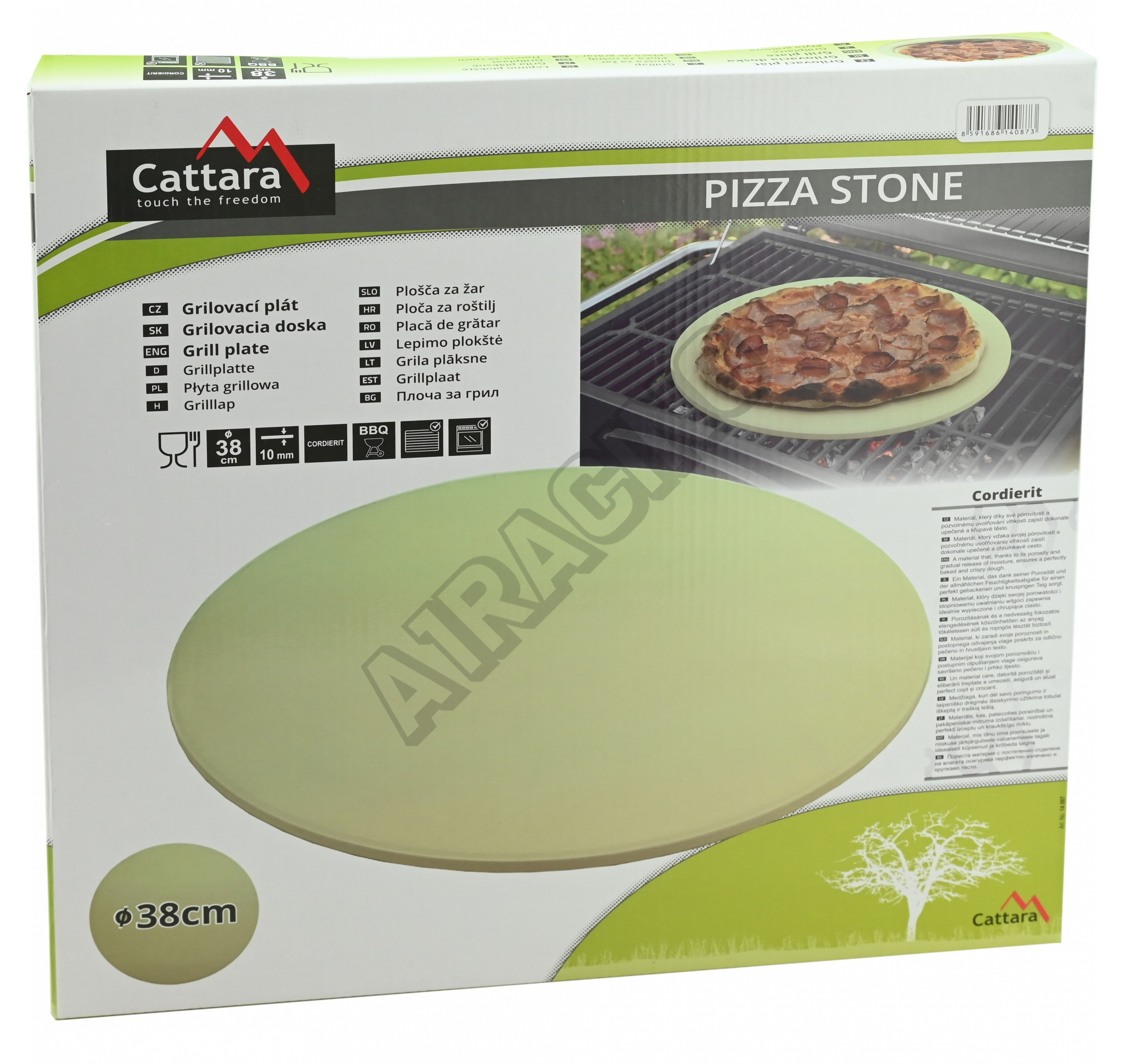 Pizza kámen s průměrem 38 cm je vhodný na gril, případně do trouby. Kromě pečení pizzy je vhodný i p