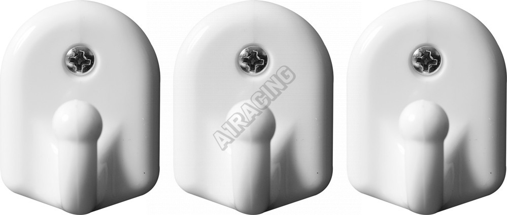 Plastové, nástěnné háčky s nosností 8 kg. Připevnění je pomocí vrutu.