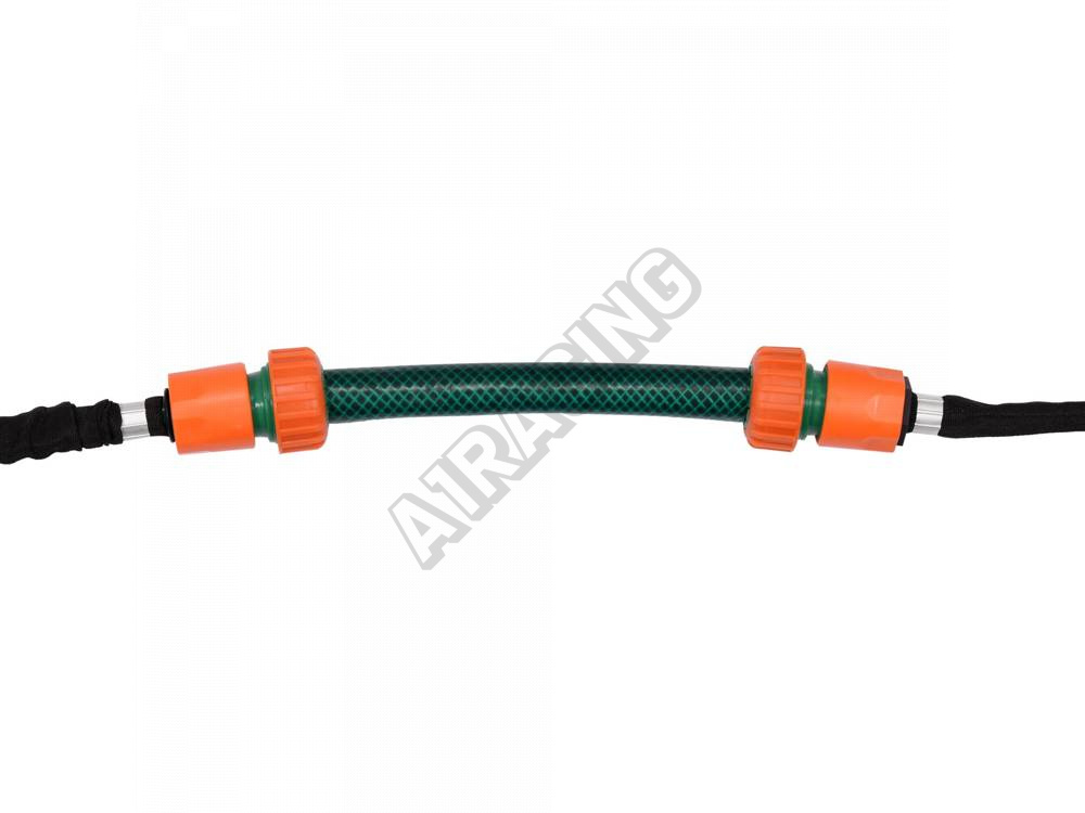 Hadice vybavená 2 konci, oba pro připojení rychlospojkou. Jeden konec s maticí. Šroubovací uzávěr - uzavření systému, odšroubovaný - pokračování systému. Spojení mezi hadicí postřikovače a tradiční hadicí je možné pomocí univerzální rychlospojky. Její výběr závisí na průměru vaší zahradní hadice (1/2", 3/4" nebo 1"). Doporučuje se použít plastové rychlospojky (mosaz nemusí pasovat).