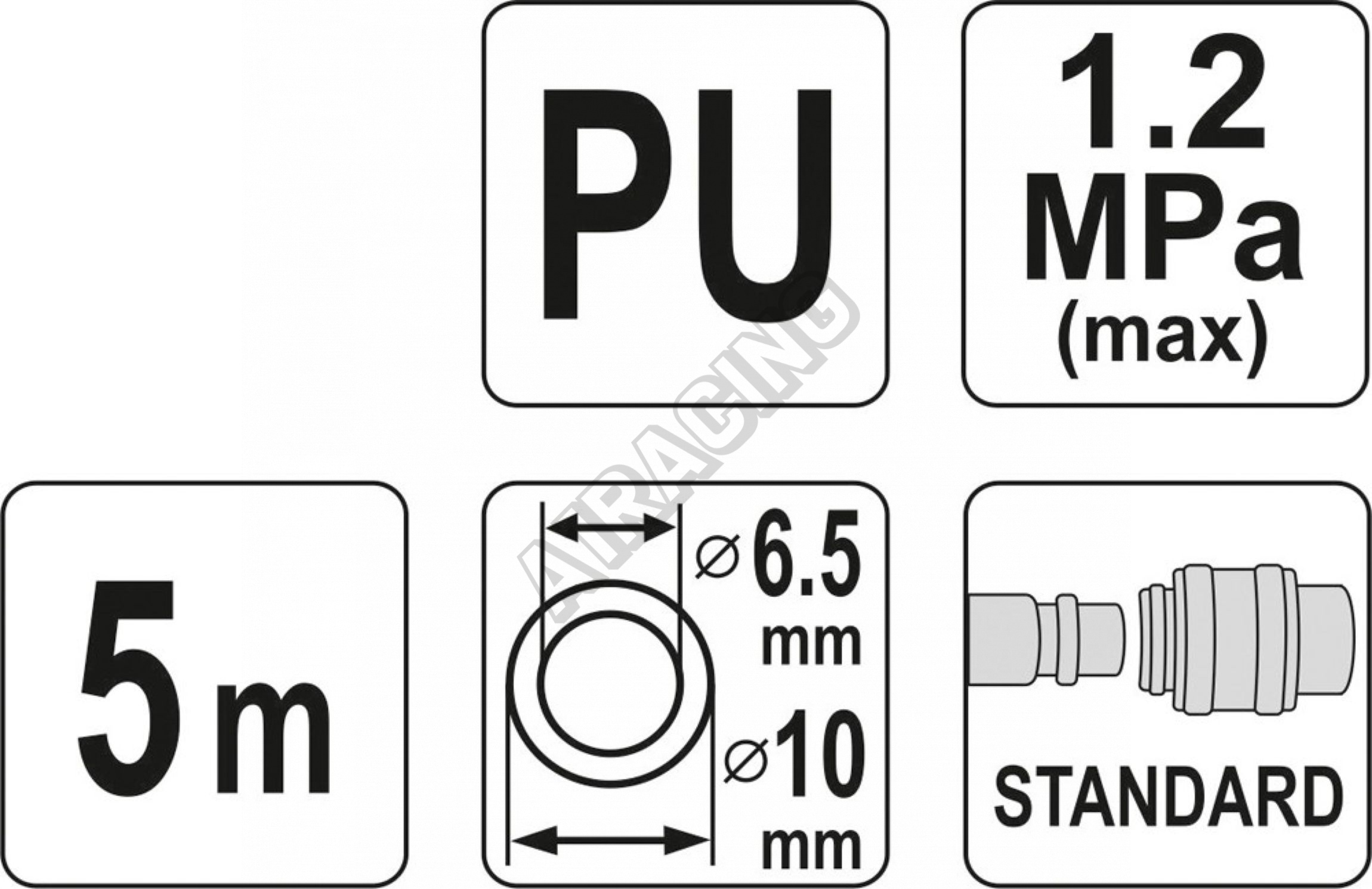 Profesionální spirálová vzduchová hadice s délkou 5 m zakončená rychlospojkami. Hadice je zhotovená