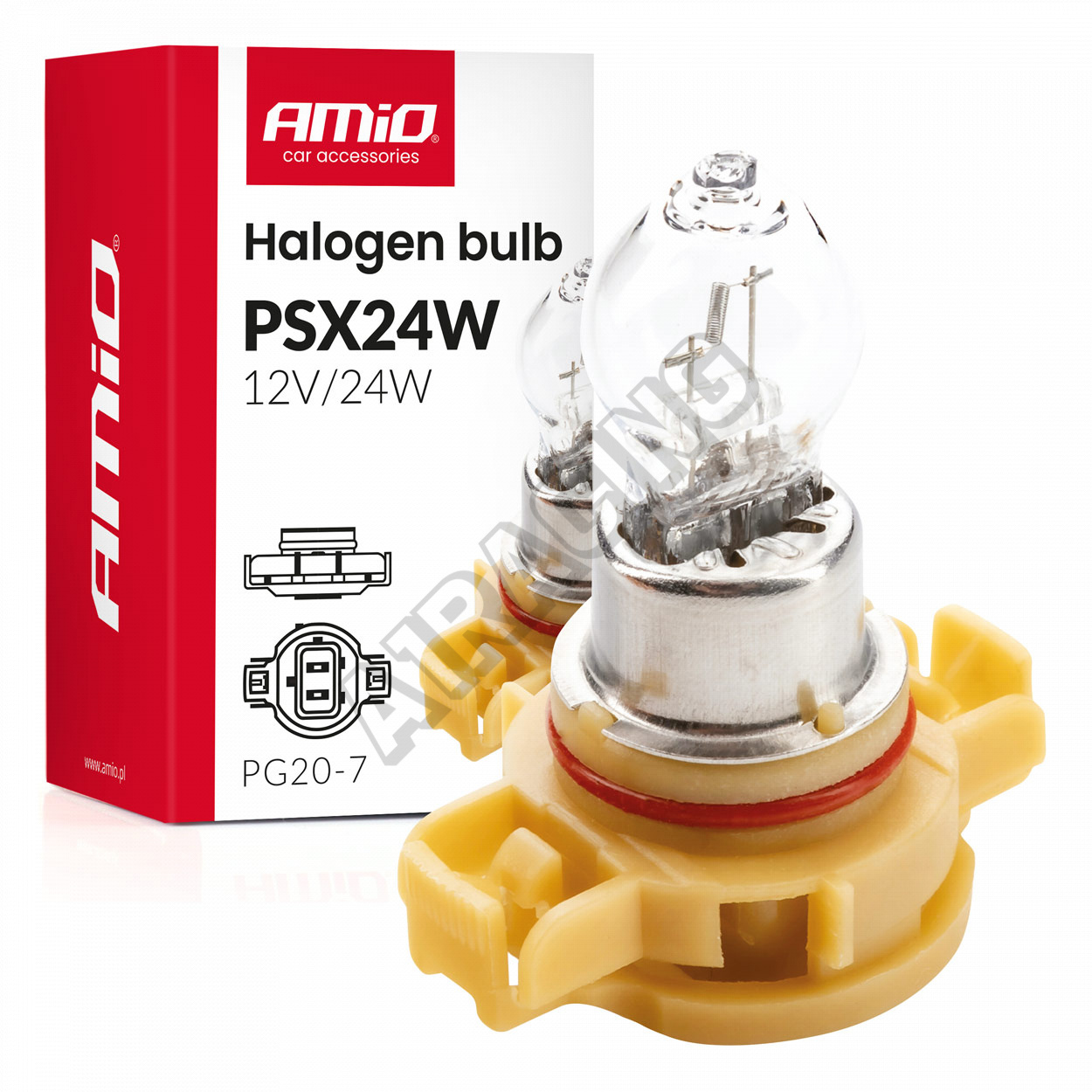 Spoľahlivá a výkonná halogénová žiarovka PSX24W s výkonom 24W a napätím 12V je spoľahlivým zdrojom svetla pre moderné automobilové reflektory. Vybavená päticou PG20-7, nachádza uplatnenie predovšetkým v denných svetlách (DRL) a v hmlových svetlách.