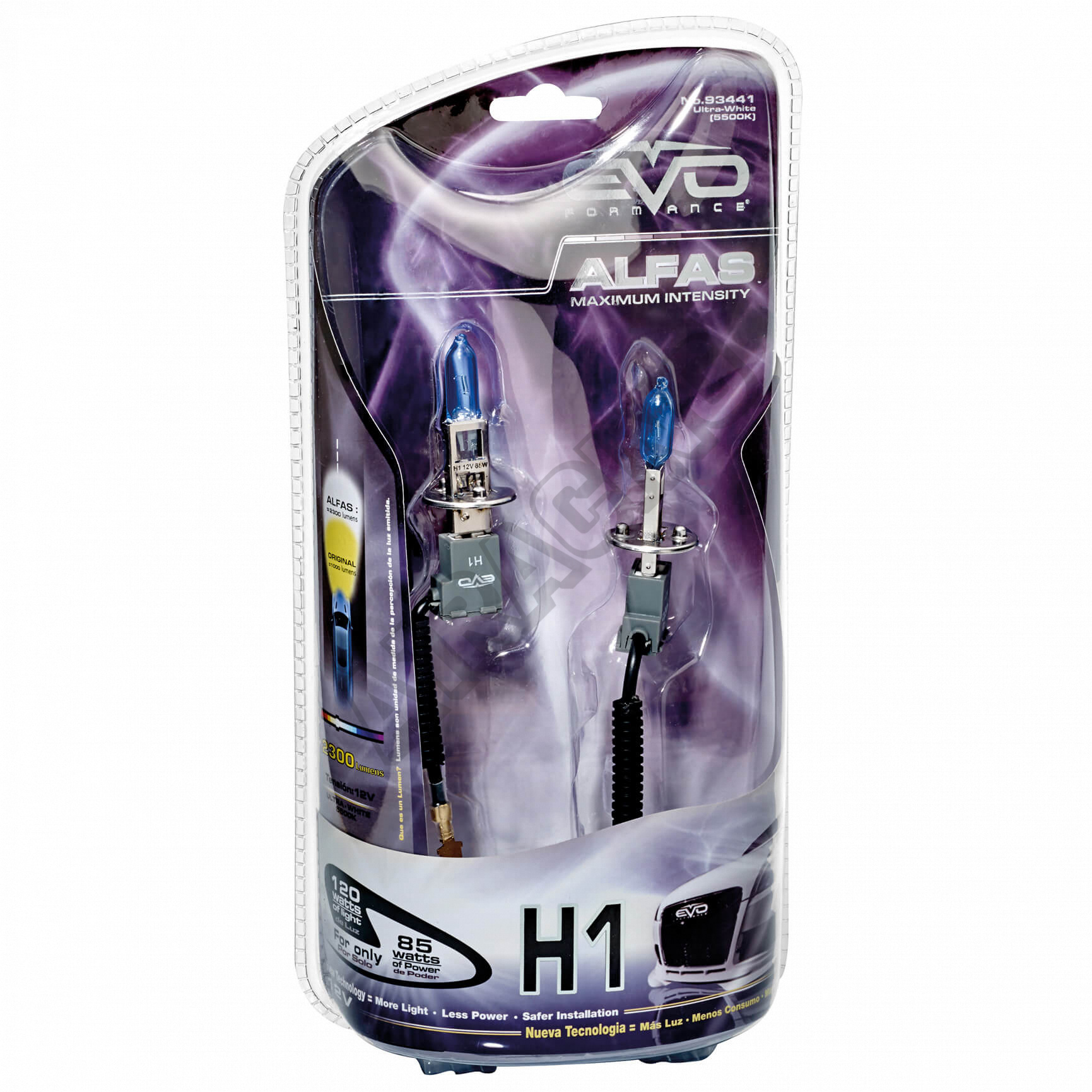 Halogénové žiarovky EVO High Lumen White dostupné v 6 rôznych prevedeniach [H1, H4, H7, H11, HB3 (9005) a HB4 (9006)] v blistrovom balení s 2 žiarovkami v balení. Žiarovky nahrádzajú pôvodné svetlomety za účelom zlepšenia viditeľnosti vďaka vysokému výkonu 4,300 kelvinov a 85 W vydávajúcim 2,300 lúmenov, čo je viac ako dvojnásobná intenzita ako pôvodné žiarovky.