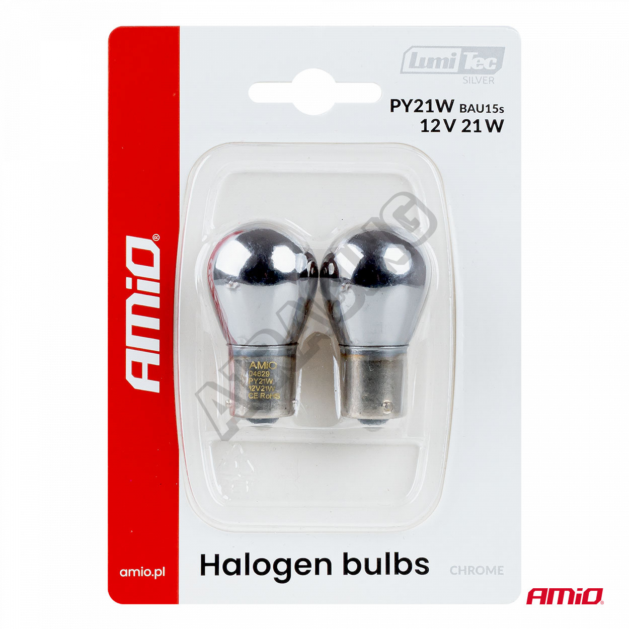 Halogénové žiarovky LumiTec PY21W 12V 21W CHROME sú vysokokvalitnou náhradou štandardných žiaroviek smeroviek. Použitý povlak CHROME im dodáva elegantný, striebristý vzhľad, vďaka čomu nie je viditeľná oranžová banka v reflektore. Po zapnutí emitujú intenzívne, oranžové svetlo, v súlade s predpismi ECE.