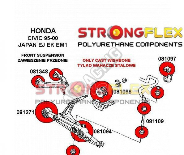 Honda Civic 1996-2000 StrongFlex Sport zostava silentblokov len pre prednú nápravu 14 ks obsahuje :