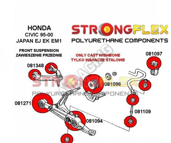Honda Civic 1996-2000 StrongFlex zostava silentblokov len pre prednú nápravu 14 ks obsahuje :