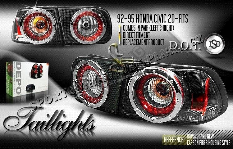 Honda Civic Coupe 2 dr 1996-2000 Depo Carbon Fiber L.E.D Tail Lights
