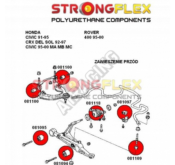 Honda CRX 1992-97 Strongflex zostava silentblokov len pre prednú nápravu 14 ks