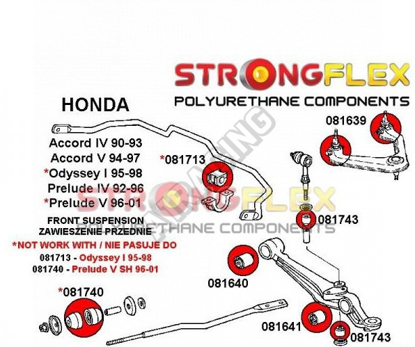 Honda Prelude 1992-96 Strongflex Šport zostava silentblokov len pre prednú nápravu 16 ks