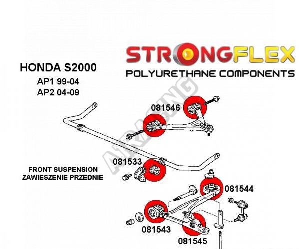 Honda S2000 StrongFlex Sport (tvrdosť 90ShA) kompletná zostava silentblokov na celé auto obsahuje :