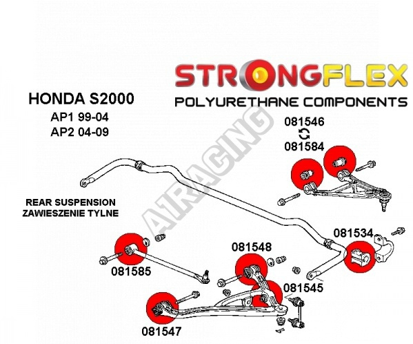 Honda S2000 1999-2004 StrongFlex Sport zostava silentblokov len pre zadnú nápravu 14 ks obsahuje: