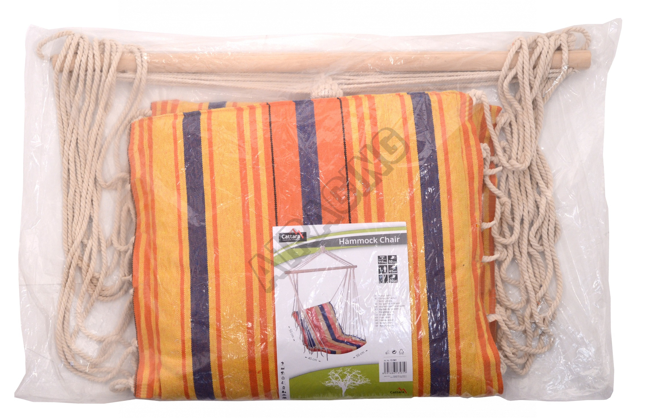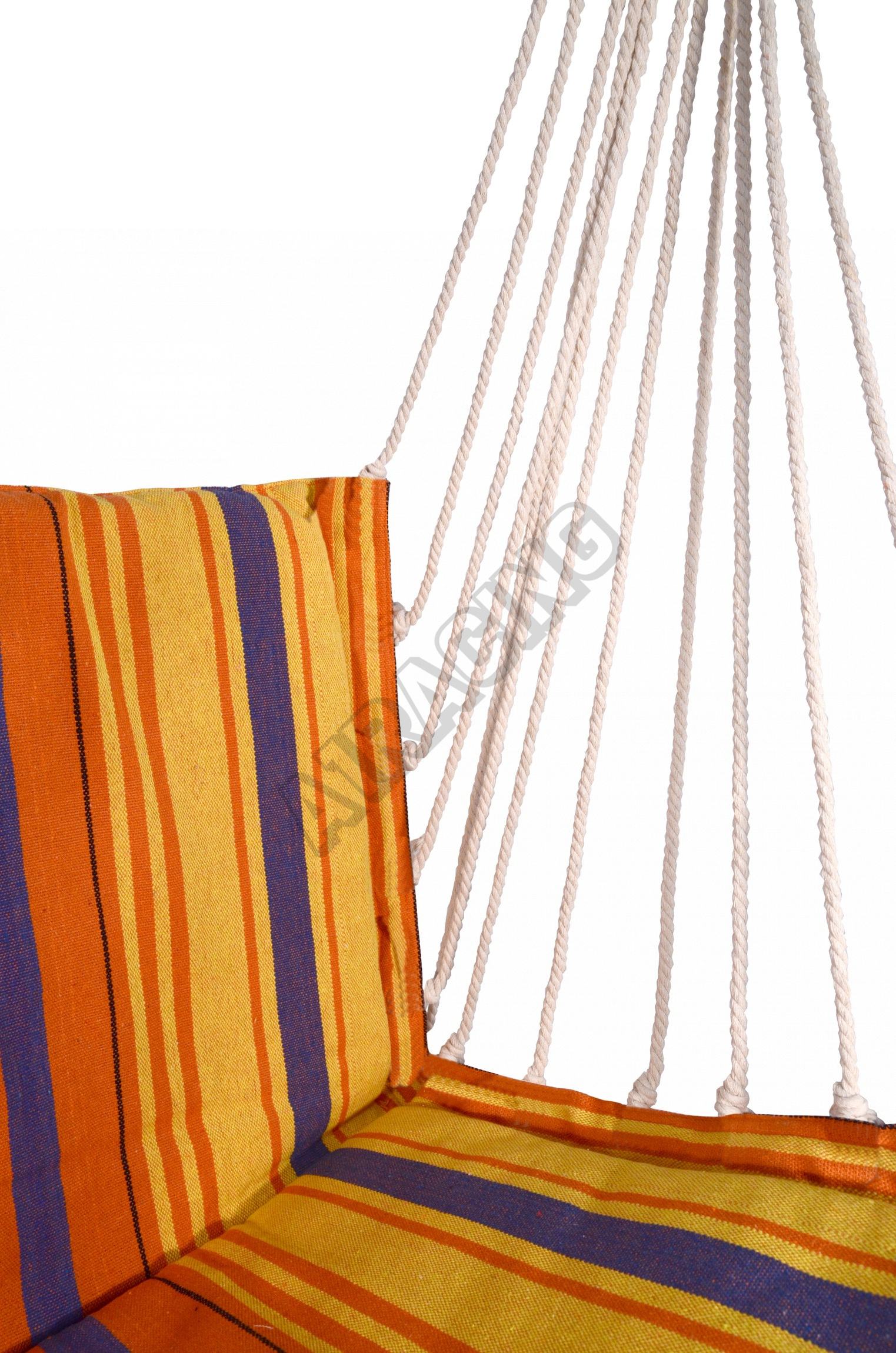 Síť je tvořena měkkým polstrovaným sedákem o rozměrech 50 x 45 cm a opěrkou s výškou 50 cm. Vysokou míru komfortu zajišťuje právě polstrování o tloušťce 3 cm, doplněné hustě tkaným, měkkým a pružným vláknem jednotlivých provazů.