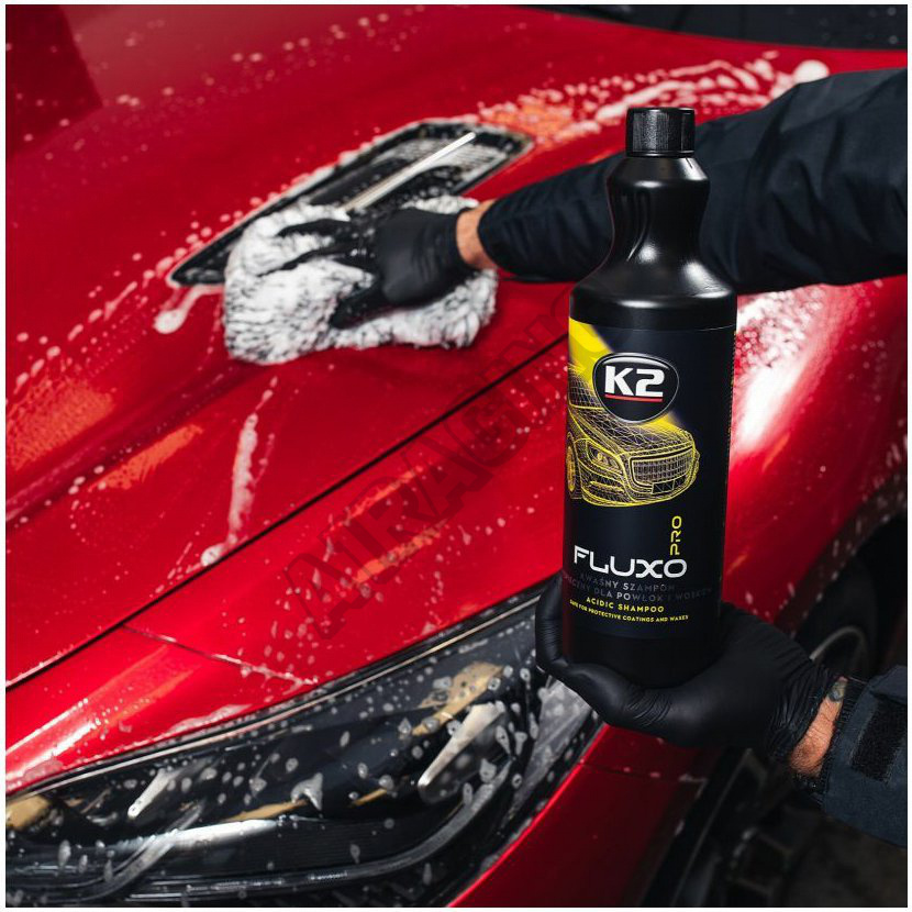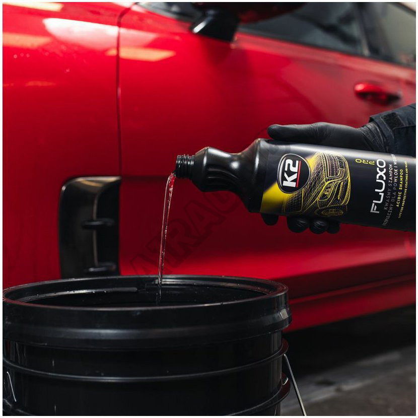 K2 Fluxo Pro je vysoce koncentrovaný, málo pěnivý šampon s kyselým pH (pH ~4), určený pro profesionální péči o automobily chráněné keramickými, křemennými nebo voskovými nátěry. Jeho jedinečné složení bez přísad účinně odstraňuje nečistoty, včetně minerálních usazenin, navrací nátěrům jejich původní hydrofobní vlastnosti a hloubkový lesk. Je ideální pro čištění laku před nanesením ochranných nátěrů.
