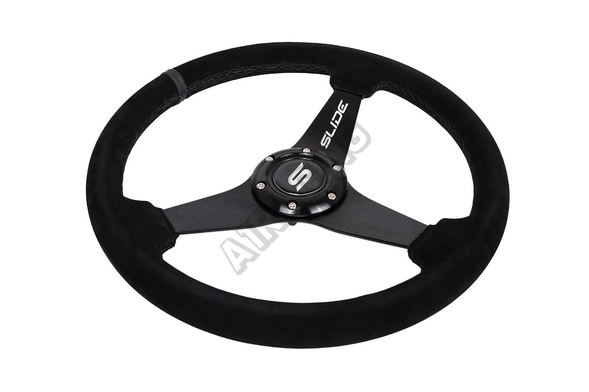 Volant SLIDE je vysoko kvalitné príslušenstvo určené pre automobilových nadšencov, ktorí chcú zlepšiť ergonómiu, komfort a presnosť riadenia svojho vozidla. Vďaka svojej športovej konštrukcii a estetike sa volanty SLIDE dokonale osvedčia vo vozidlách pripravených na jazdu na okruhu. Táto verzia volantu sa vyznačuje výnimočným prevedením z semišu, čo zaisťuje istý úchop a pohodlie pri používaní.
