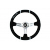 Volant SLIDE je vysoko kvalitné príslušenstvo určené pre automobilových nadšencov, ktorí chcú zlepšiť ergonómiu, komfort a presnosť riadenia svojho vozidla. Vďaka svojej športovej konštrukcii a estetike sa volanty SLIDE dokonale osvedčia vo vozidlách pripravených na jazdu na okruhu. Táto verzia volantu sa vyznačuje výnimočným prevedením z semišu, čo zaisťuje istý úchop a pohodlie pri používaní. Navyše, dvojité strieborné pruhy na obruči nielenže dodávajú športový charakter, ale tiež uľahčujú presné určenie centrálnej polohy volantu, čo zvyšuje kontrolu nad vozidlom.