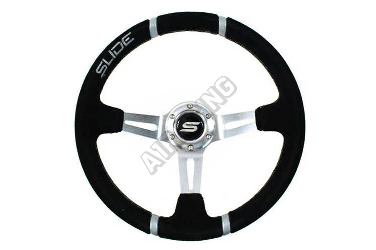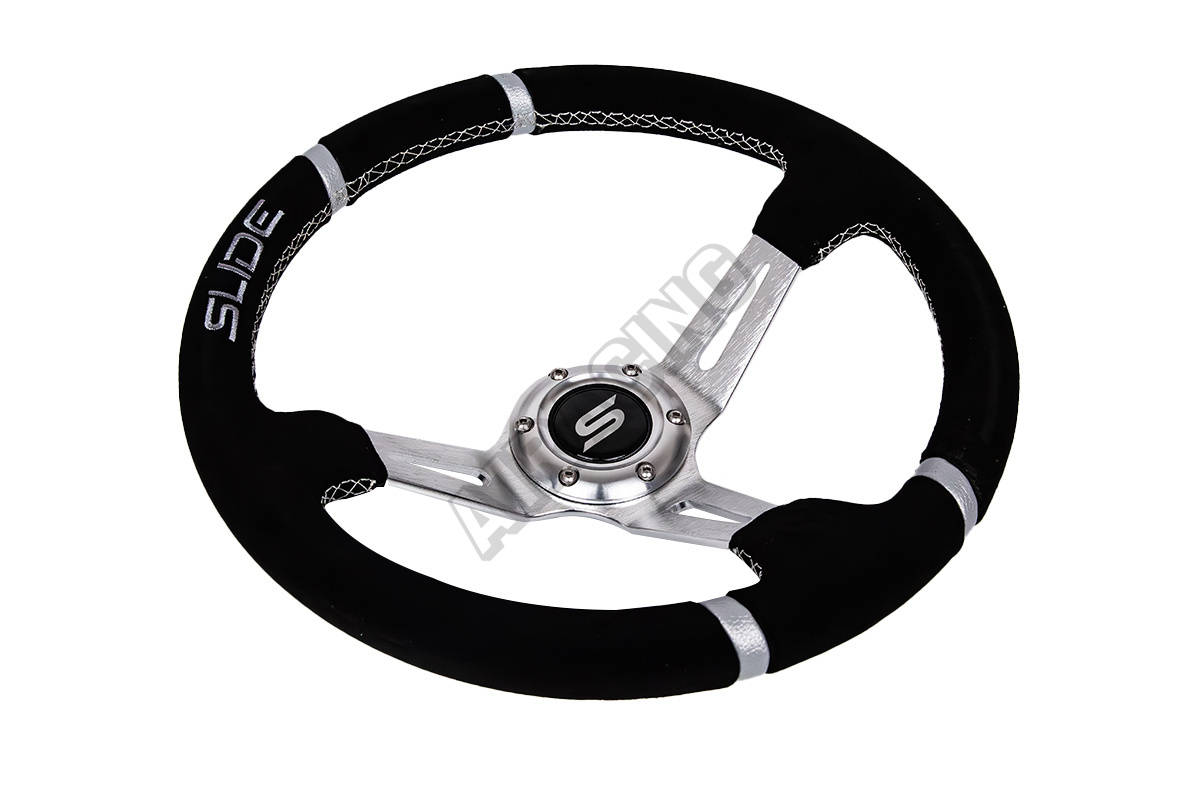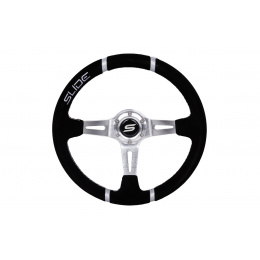 Volant SLIDE je vysoko kvalitné príslušenstvo určené pre automobilových nadšencov, ktorí chcú zlepšiť ergonómiu, komfort a presnosť riadenia svojho vozidla. Vďaka svojej športovej konštrukcii a estetike sa volanty SLIDE dokonale osvedčia vo vozidlách pripravených na jazdu na okruhu. Táto verzia volantu sa vyznačuje výnimočným prevedením z semišu, čo zaisťuje istý úchop a pohodlie pri používaní. Navyše, dvojité strieborné pruhy na obruči nielenže dodávajú športový charakter, ale tiež uľahčujú presné určenie centrálnej polohy volantu, čo zvyšuje kontrolu nad vozidlom.