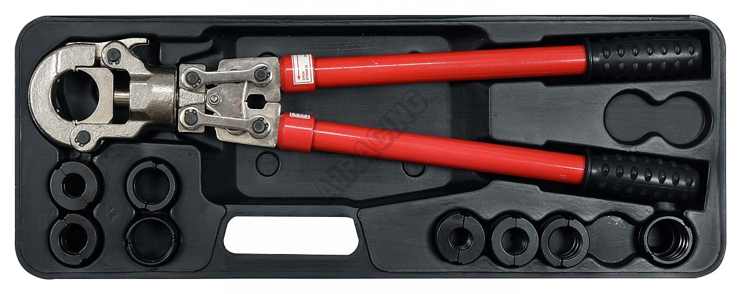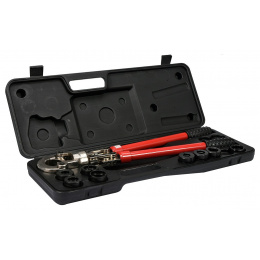 Lisovací kleště na plastové vodovodní potrubí PEX-AL-PEX, PERT-AL-PERT se sadou 8 výměnných čelistí