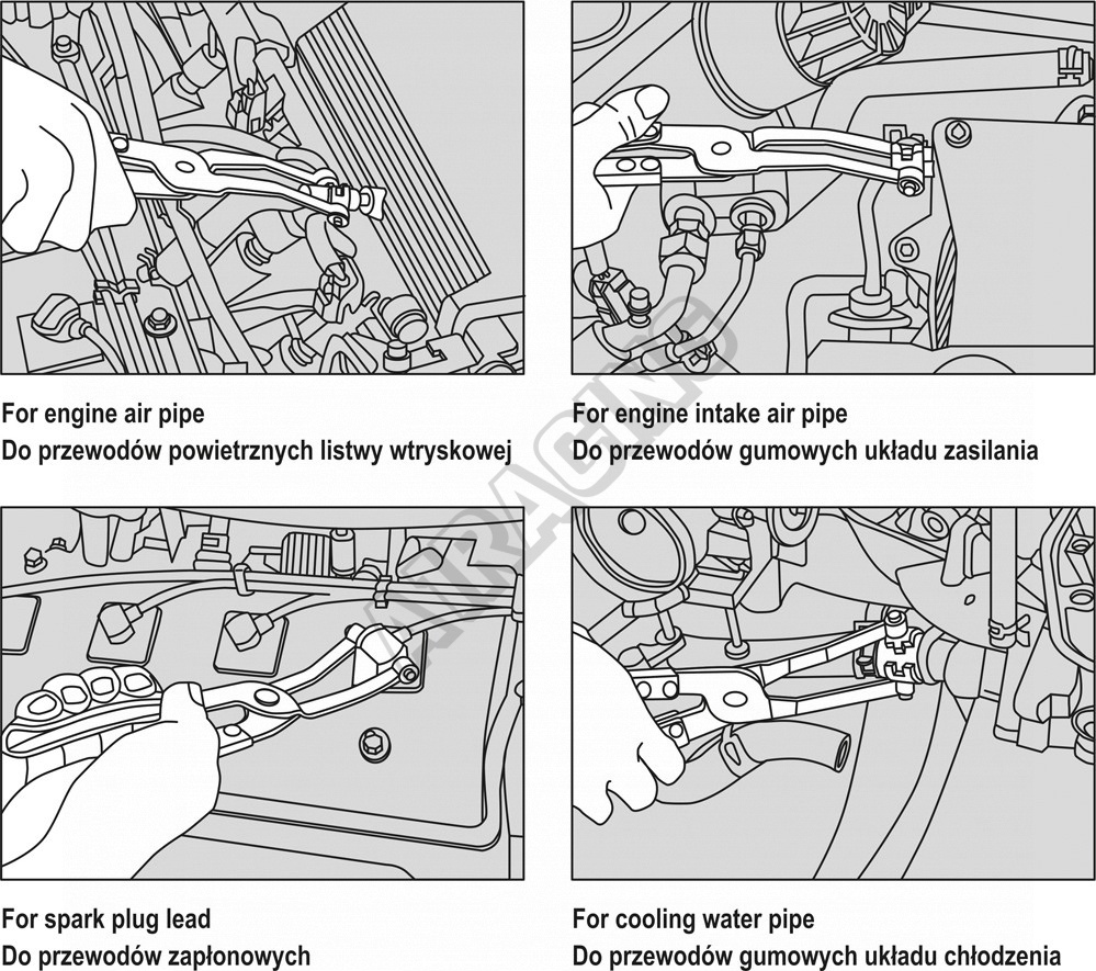 Sada kleští pro spony a hadice. Výrazně usnadňuje manipulaci, montáž a demontáž. Délka kleští 217 a