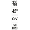 Zhotovení z odolné CrV oceli délky 330 mm, se zoubkovitými čelistmi s tvrdostí 50HRC.