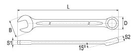 Očkoplochý klíč Yato vyrobený z chromvanadiové slitiny oceli, povrch je částečně satinovaný a leštěn