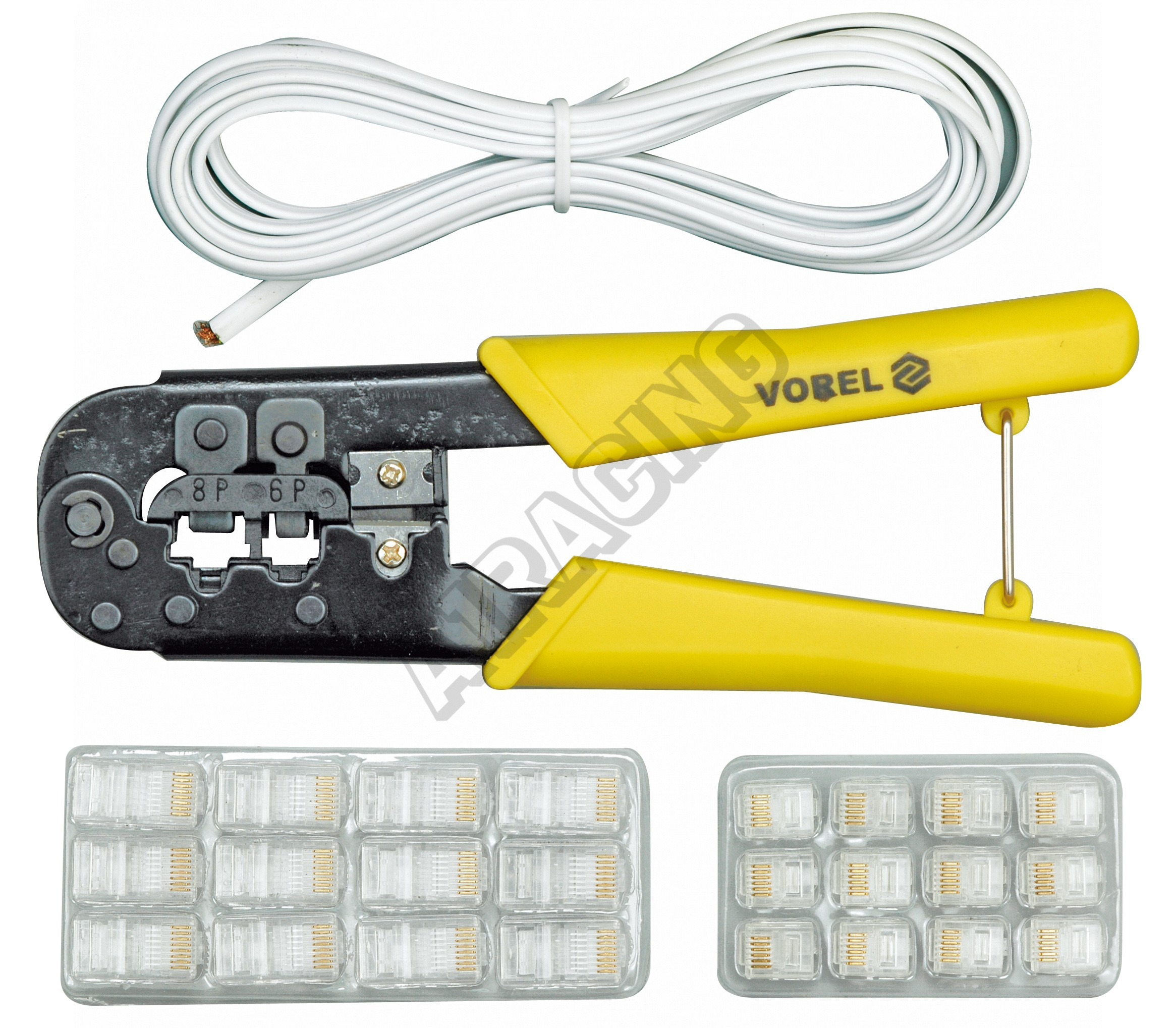Sada konektorových klieští s káblom a konektormi (6P - RJ11/12 a 8P - RJ45). Kovové kliešte s ergono