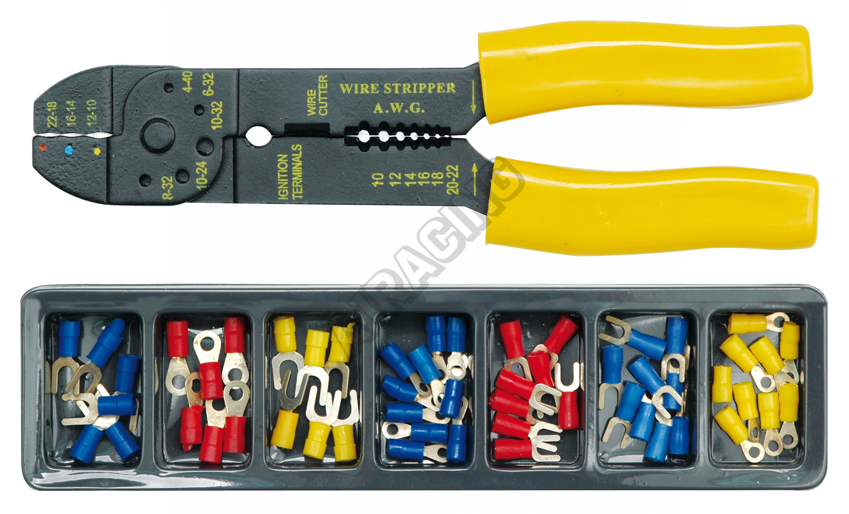 Sada konektorových klieští + 100 kusov konektorov uložené v prehľadnom plastovom puzdre. Klasické el