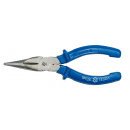 Predĺžené rovné kliešte 160 mm. Povrch zúbkovaných čeľustí s profilovanými čepieľkami na strihanie drôtu a klincov. Rukoväte potiahnuté pohodlnými plastovými krytmi.