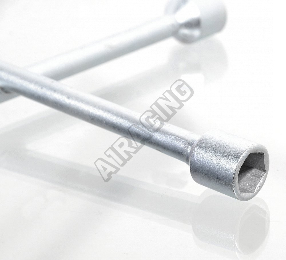 Celokovový kľúč v tvare kríža, ktorý je určený na povoľovanie či uťahovanie matíc kolies automobilov.
