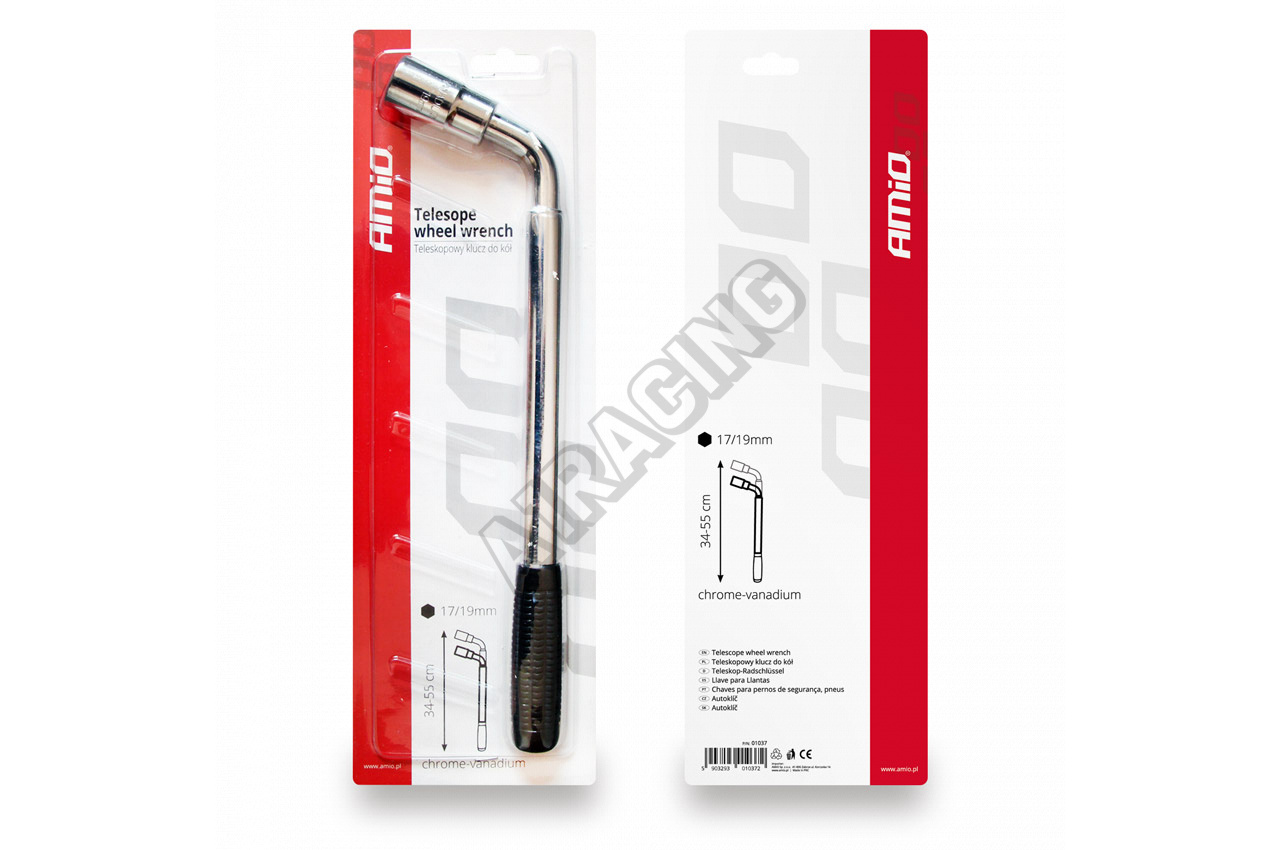 Kľúč na kolesá 17-19 mmTeleskopický kľúč na kolieskach s variabilnou dĺžkou 34-55 cm a veľkou protiš