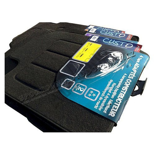 Koberec pro řidiče se zesílenou částí v místě pedálů. Zadní strana autokoberců je vybavena protiskluzovou vrstvou a suchými zipy, díky čemuž koberec výtečně drží na svém místě.
