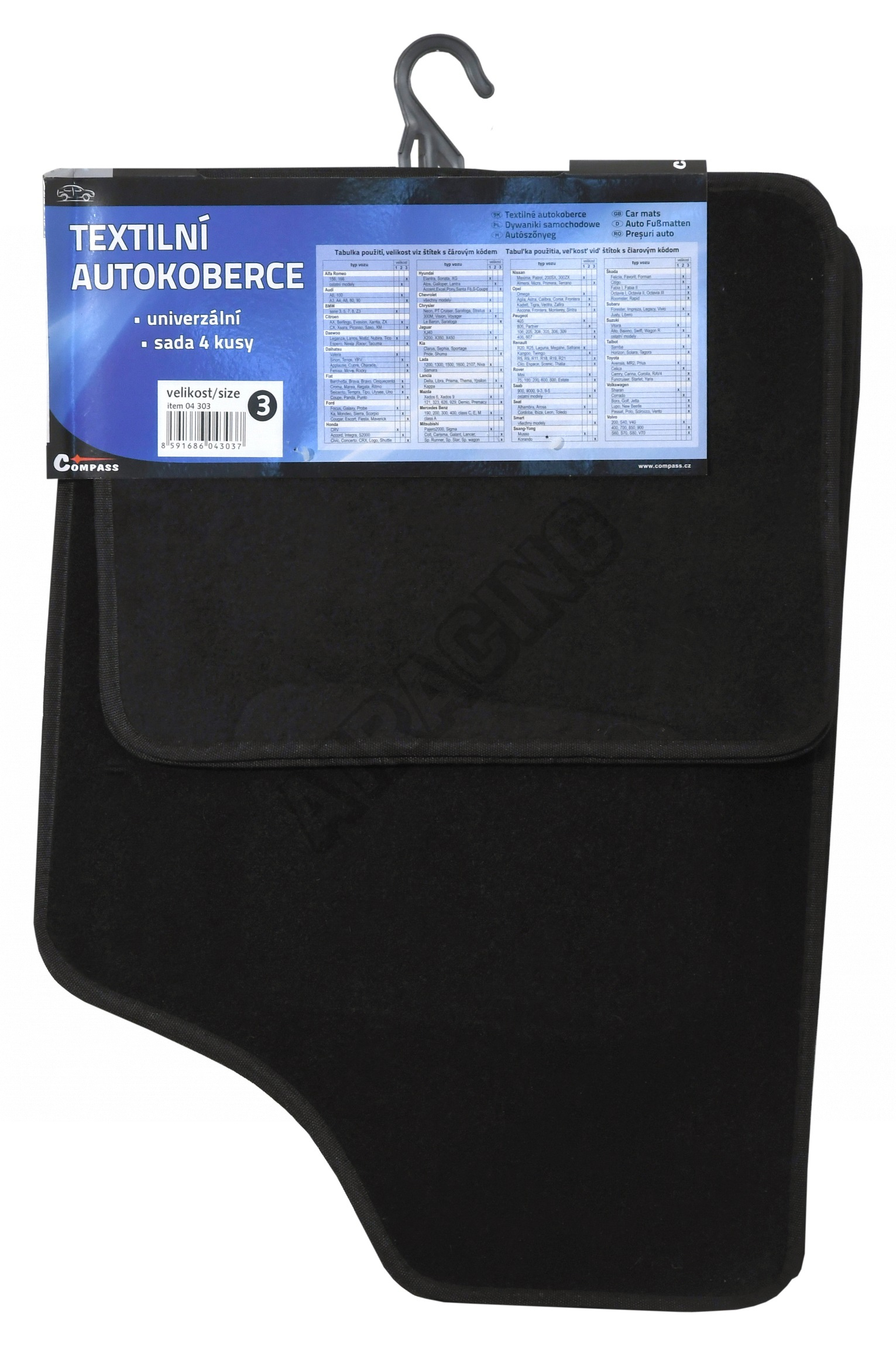 Koberce textilné UNI vel.3., 4ks čierné Univerzální textilní koberce do automobilu. Na obalu vyobra