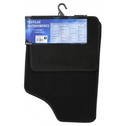 Univerzální textilní koberce do automobilu. Na obalu vyobrazena tabulka základních typů vozidel, na které lze koberce použít. Sada 4 kusy (2x přední, 2x zadní díl).