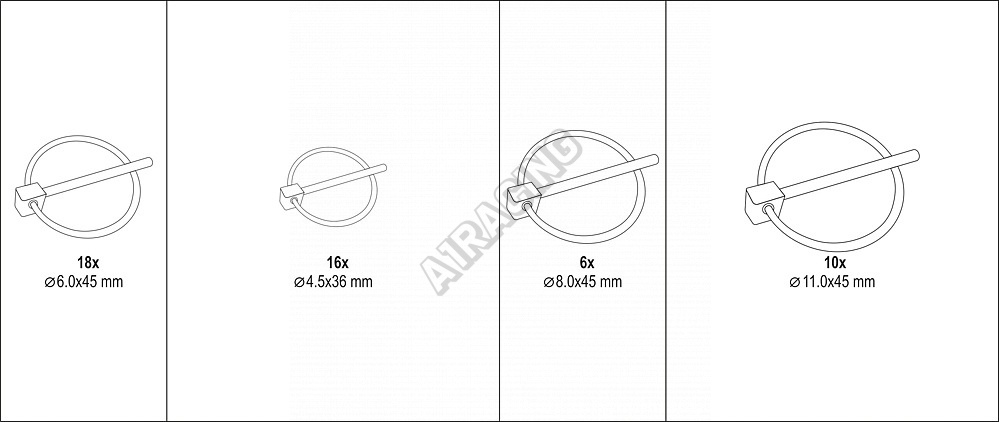 Sada 50 ks kvalitních pojistných kolíků. Vše je přehledně uspořádáno v kompaktním plastovém kufříku.