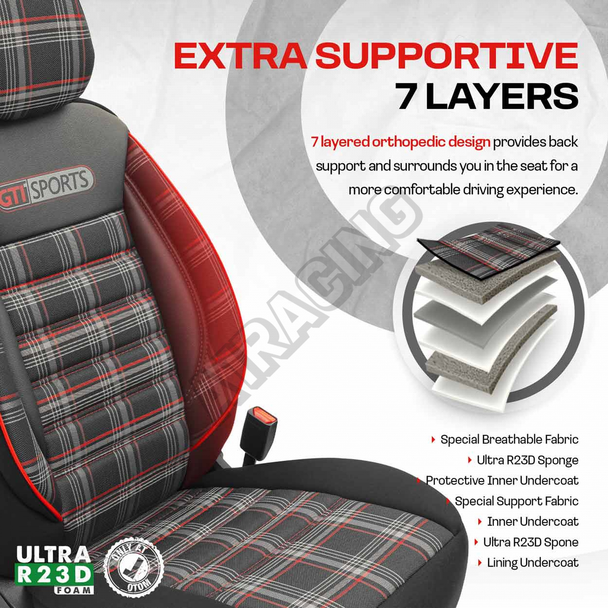 Kompletná sada poťahov na autosedačky GTI SPORT červené
