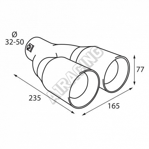 Nerez prevedenie, použitie pre nasadenie 33-49 mm, celková dĺžka koncovky je 235 mm, priemer koncoviek 2x77 mm, celková šírka koncoviek je 165 mm.