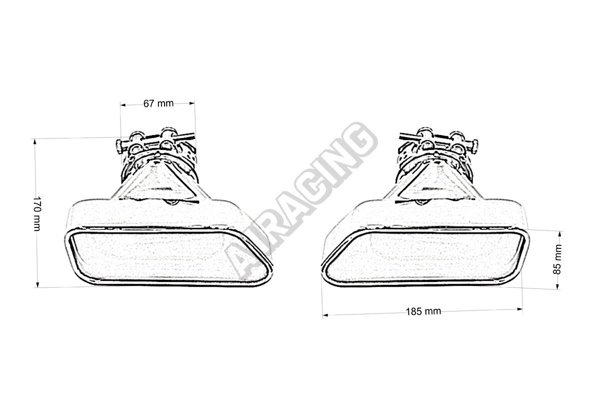 Koncovka výfuku z nehrdzavejúcej ocele leštenáRozmery: Priemer výstupu: 185x85mm Priemer vstupu: 67m