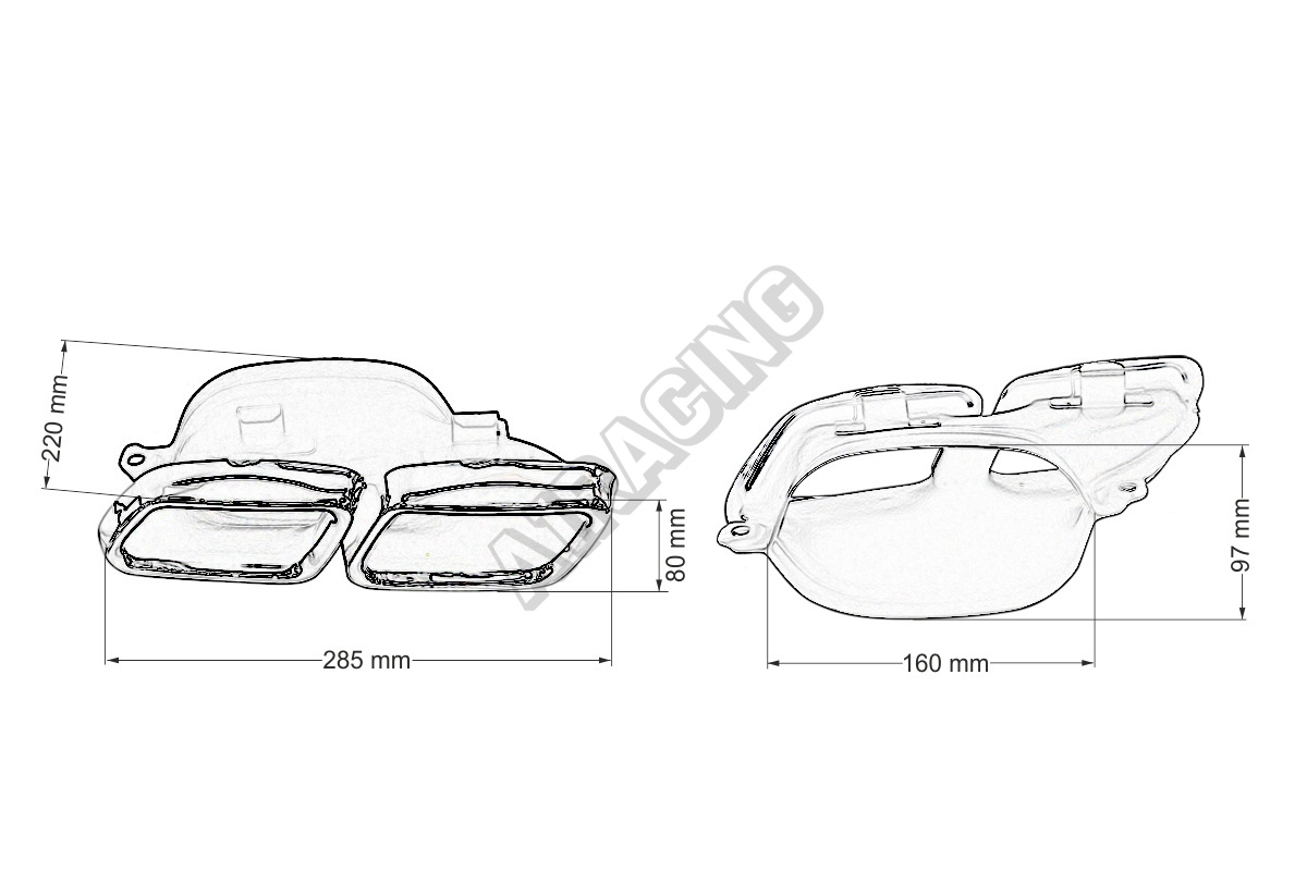 Koncovka tlmiča 285x80mm vstup 160x97mm Mercedes W212 Leštená Sada
