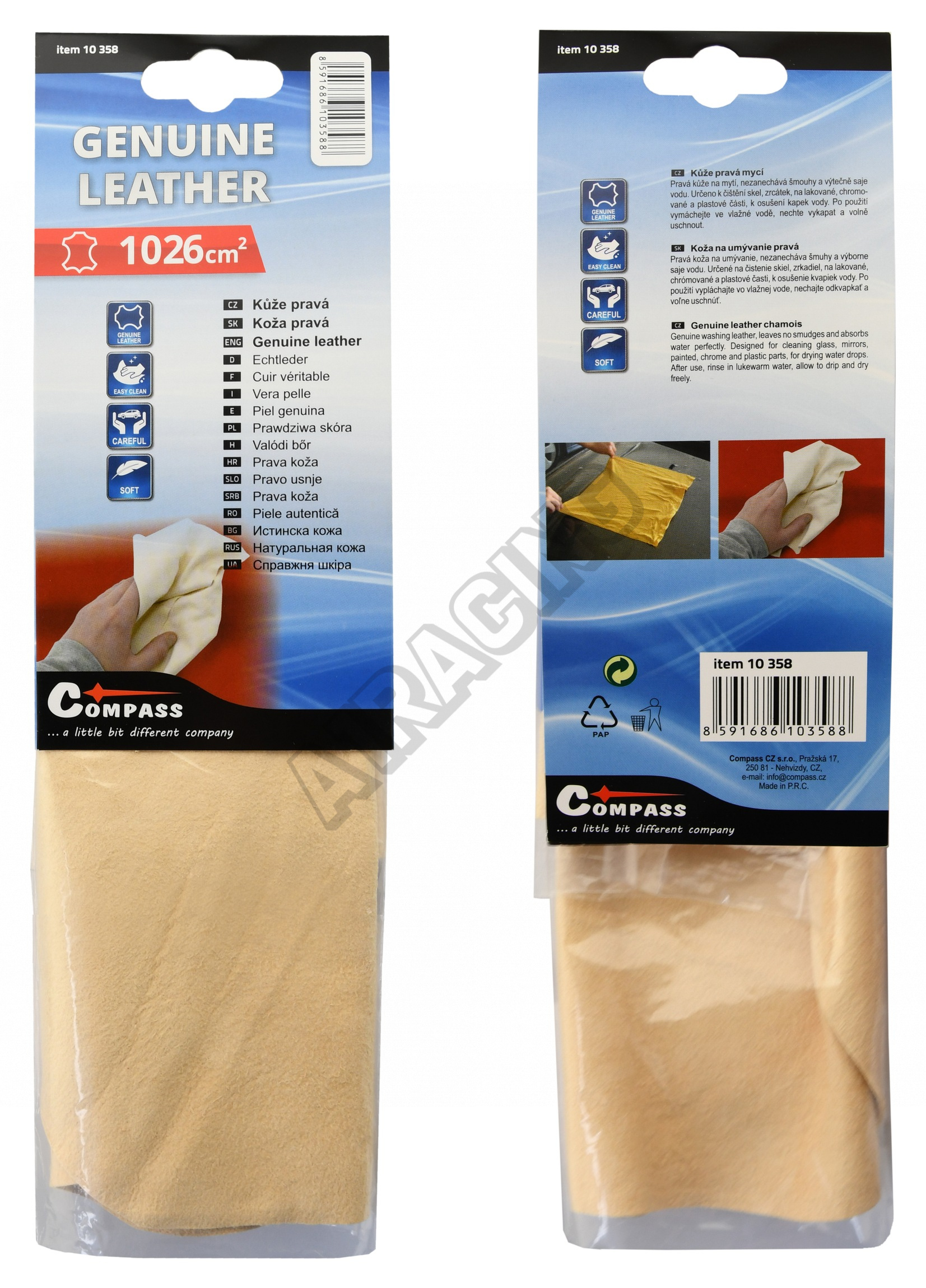 Pravá koža na umývanie, nezanecháva šmuhy a výborne saje vodu. Určené na čistenie skiel, zrkadiel, na lakované, chrómované a plastové časti, na osušenie kvapiek vody. Po použití vypláchajte vo vlažnej vode, nechajte vykvapkať a voľne uschnúť.