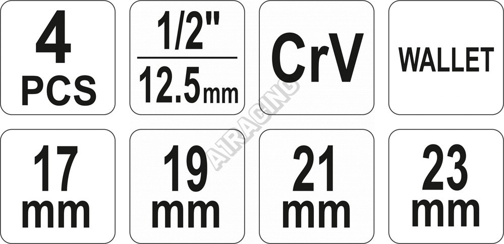 | Velikost ořechů sady | 17; 19; 21; 23 mm |
