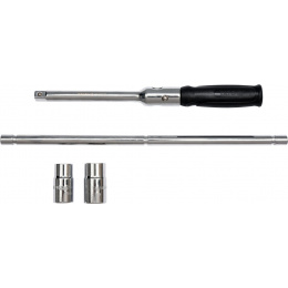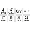 Sada je vyrobena z vysoce kvalitní CrV oceli. Obsah balení je samotný klíč s ergonomicky tvarovanou rukojetí a ramenem s jehož pomocí vytvoříme potřebnou páku (křížový klíč) a samotné ořechy velikosti 17, 19, 21, 22 mm, vše navíc uložené k pouzdře.