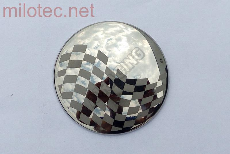 1x Přední kryt emblému Rally s motivem šachovnice z ušlechtilé oceli opatřený oboustrannou lepenkou